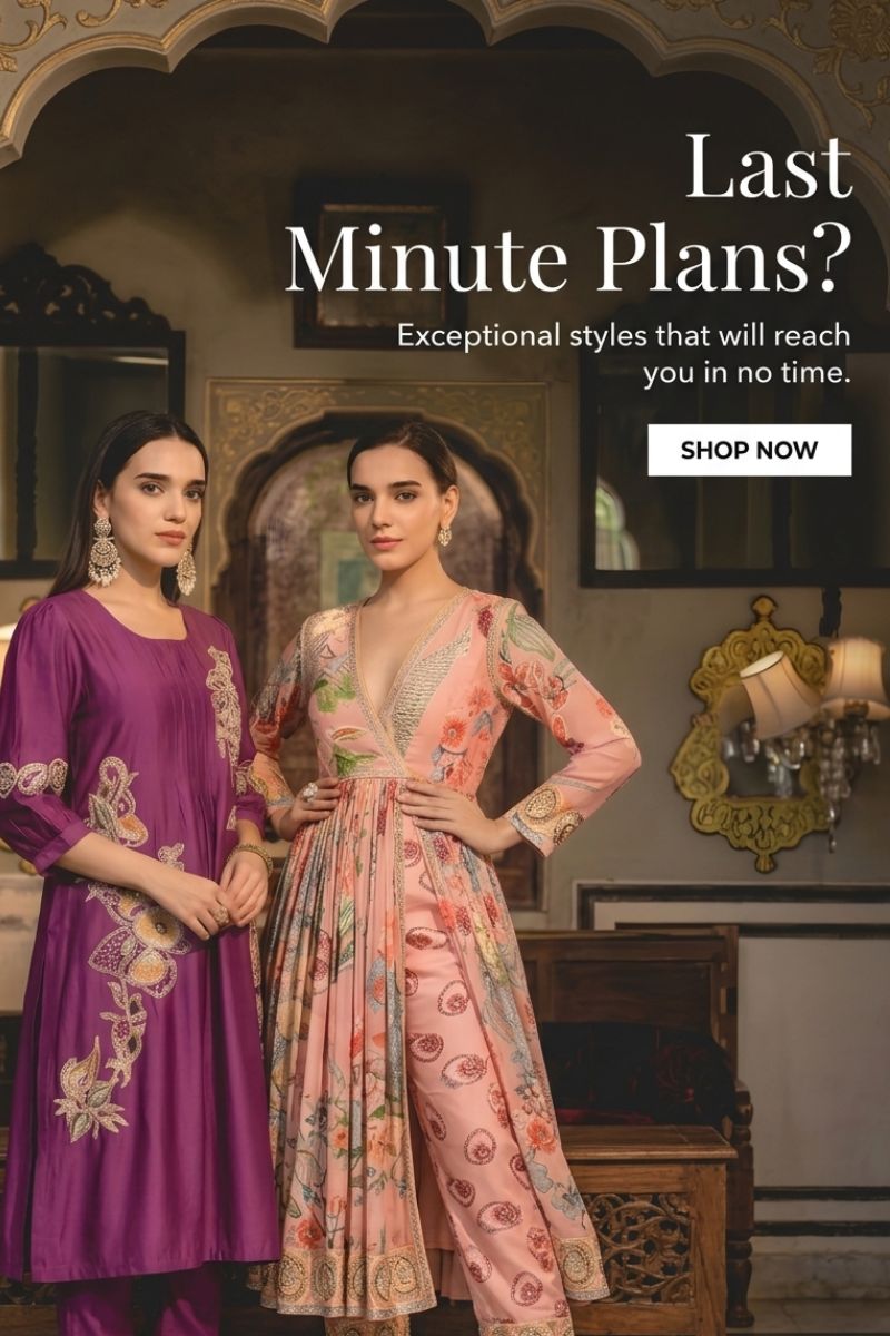 Pastel Pink Anarkali Kurta Set with Coral Print Pants & Embroidery