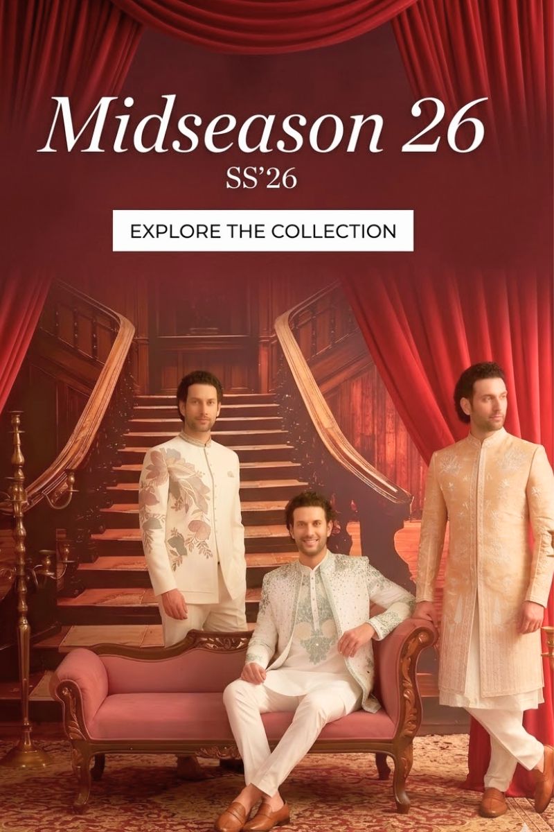 This ivory italian silk stylish suit is adorned with beads and stone work