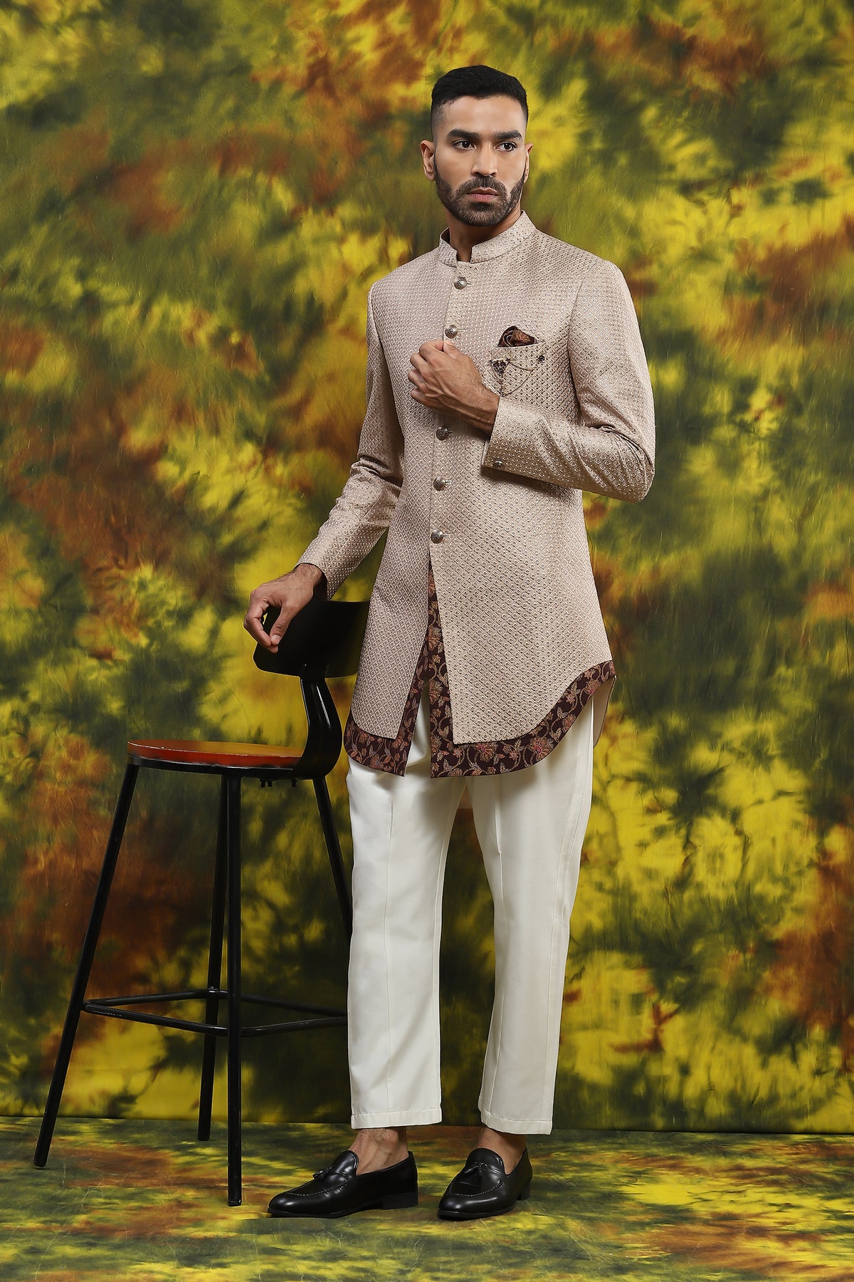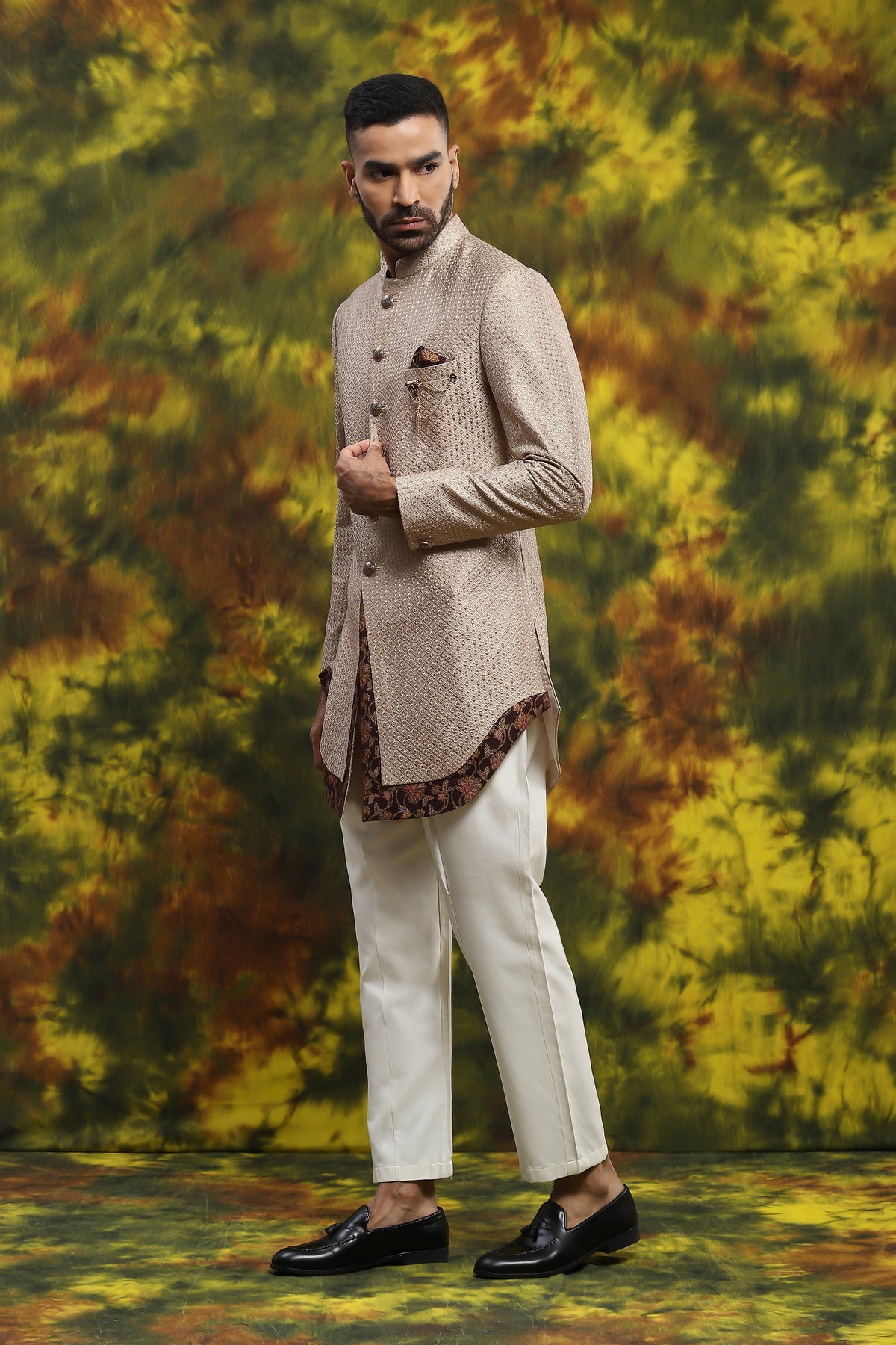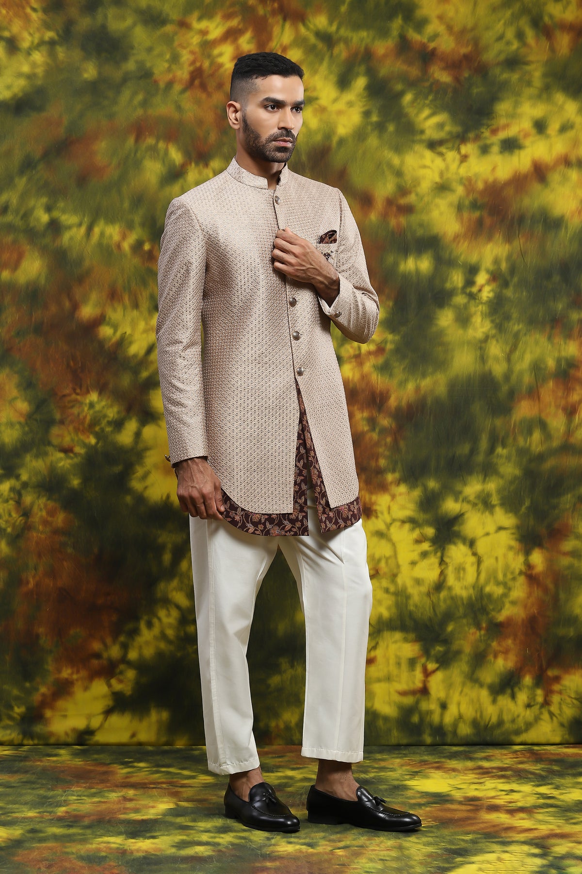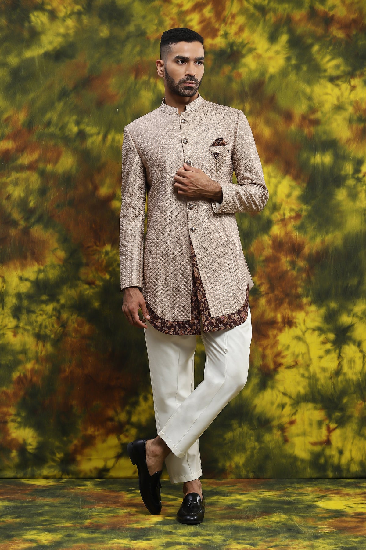 Featuring A Handloom Kurta In Beige Colour With Dark Colour Combination And Paint Pajama This Is More Like Wedding Ceremony Types Of Vibe