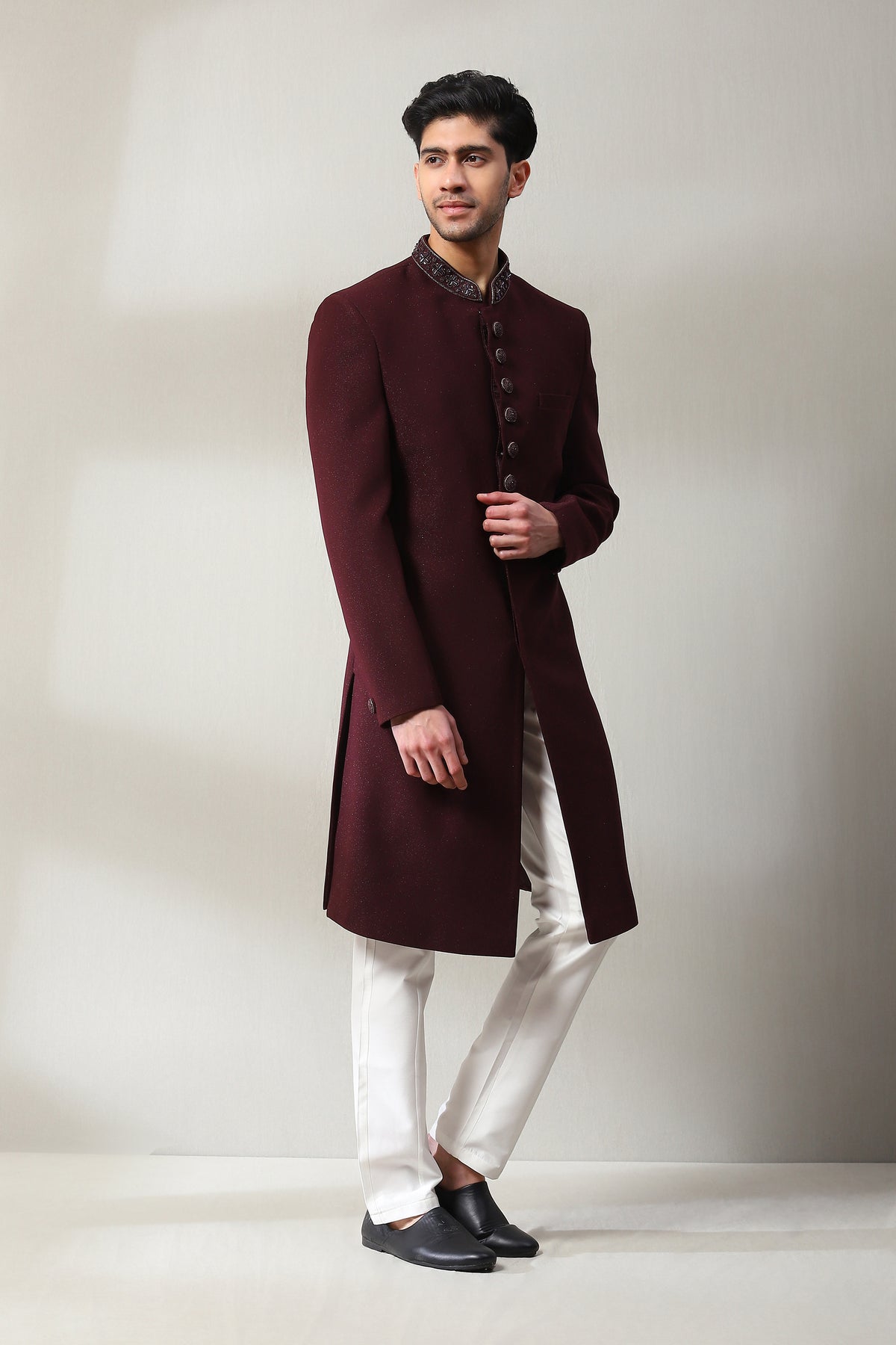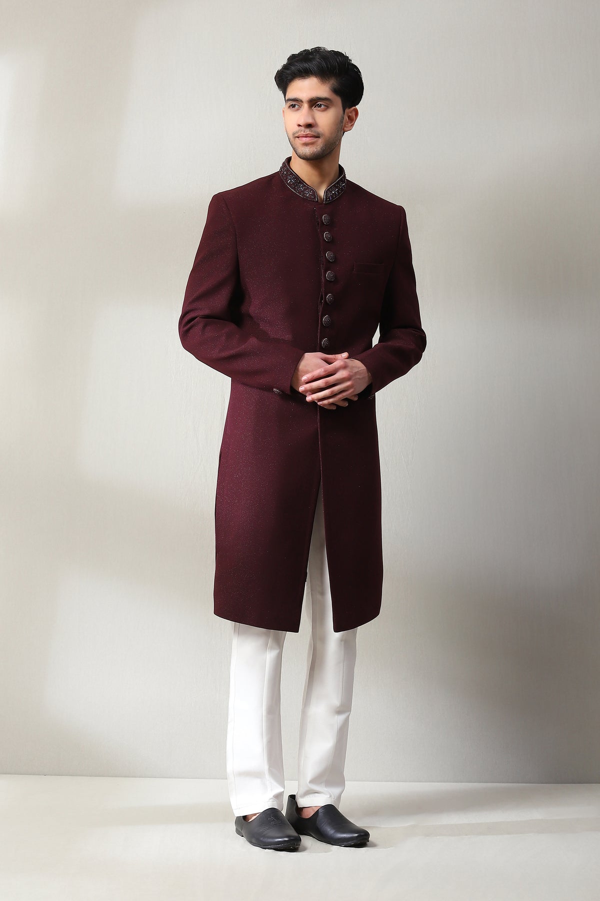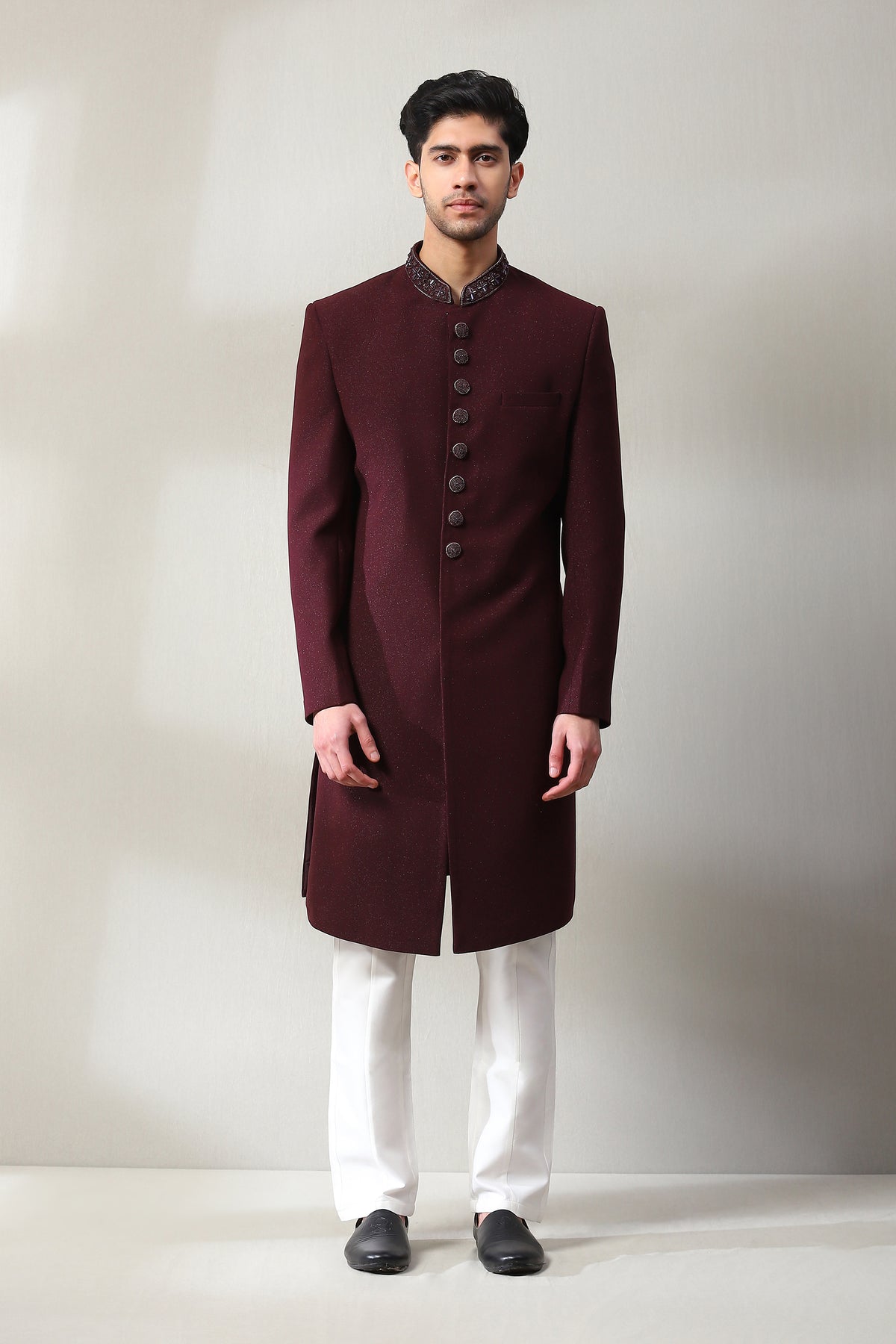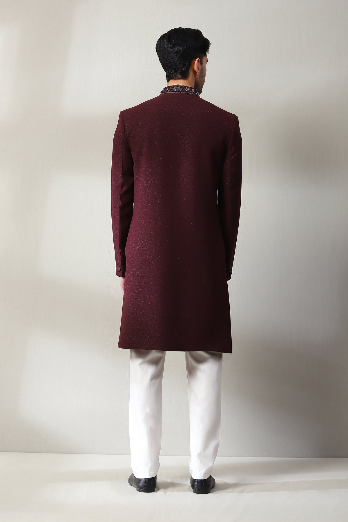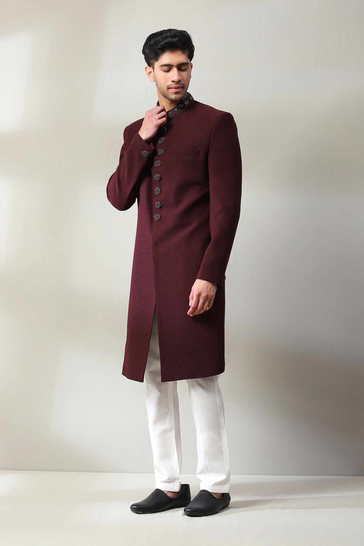 This Shimmer Indonesian Indo Western Has Been Adorned With Hand Embroidery On Ban Neck And Buttons