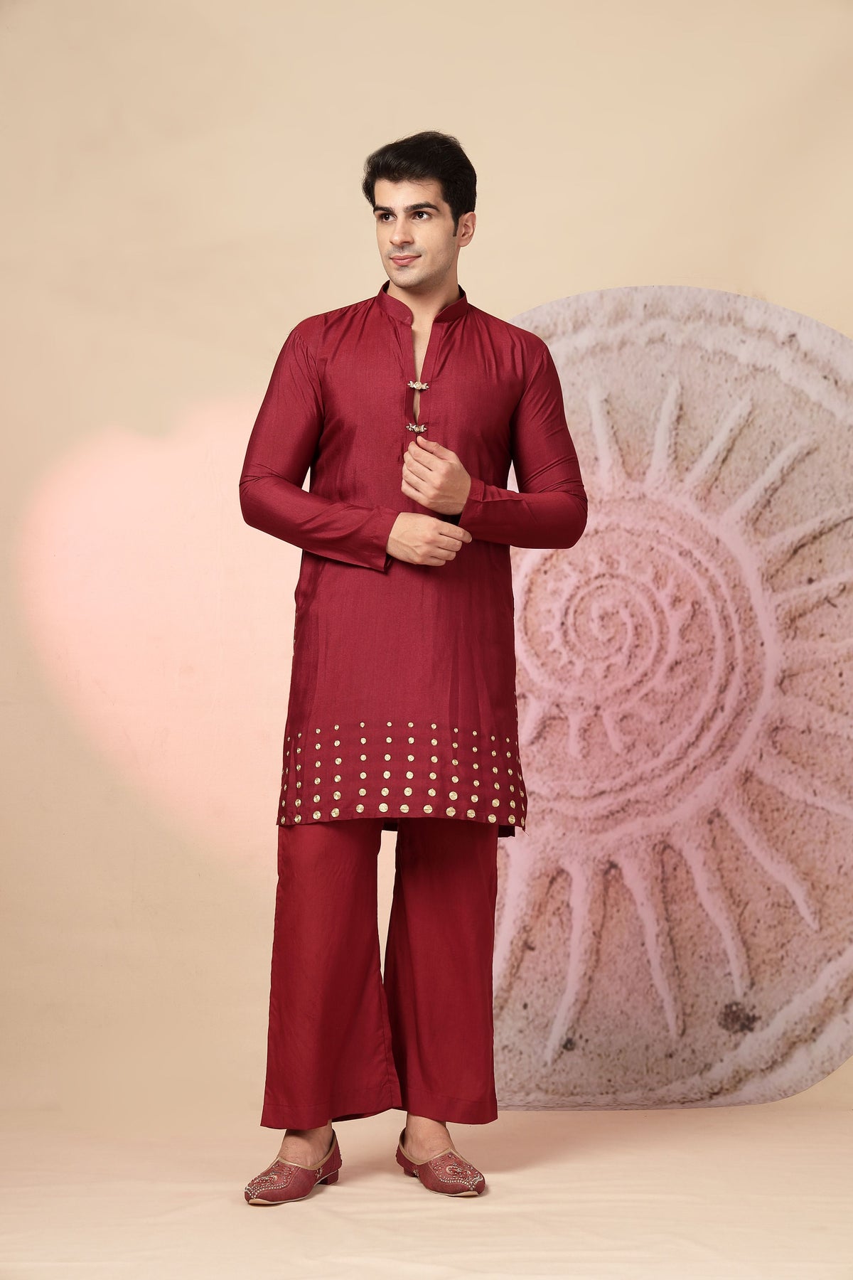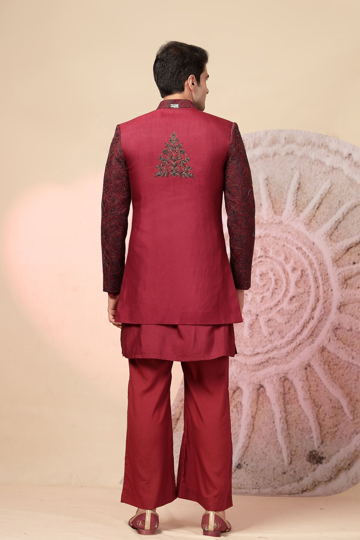 Maroon Embroidered Jacket with Palazzo Set
