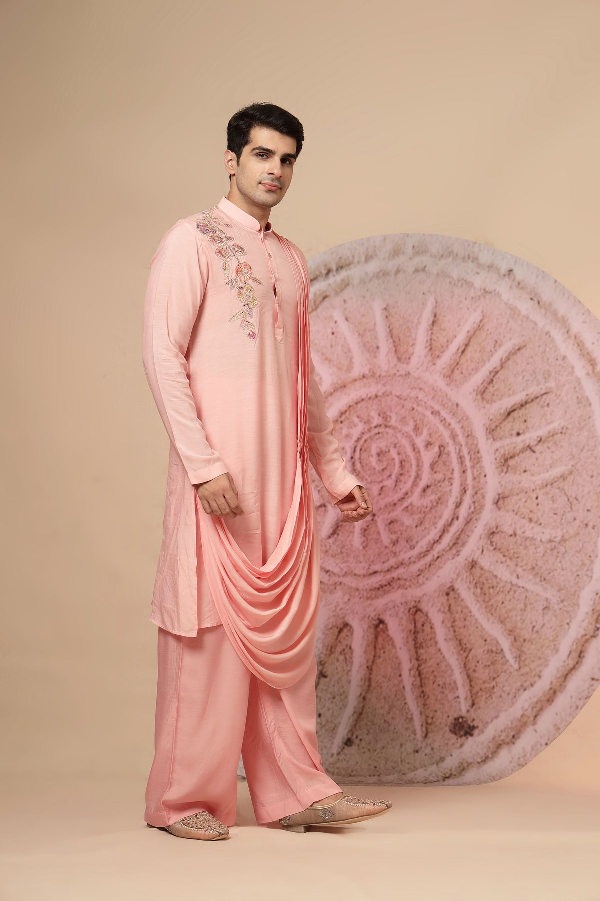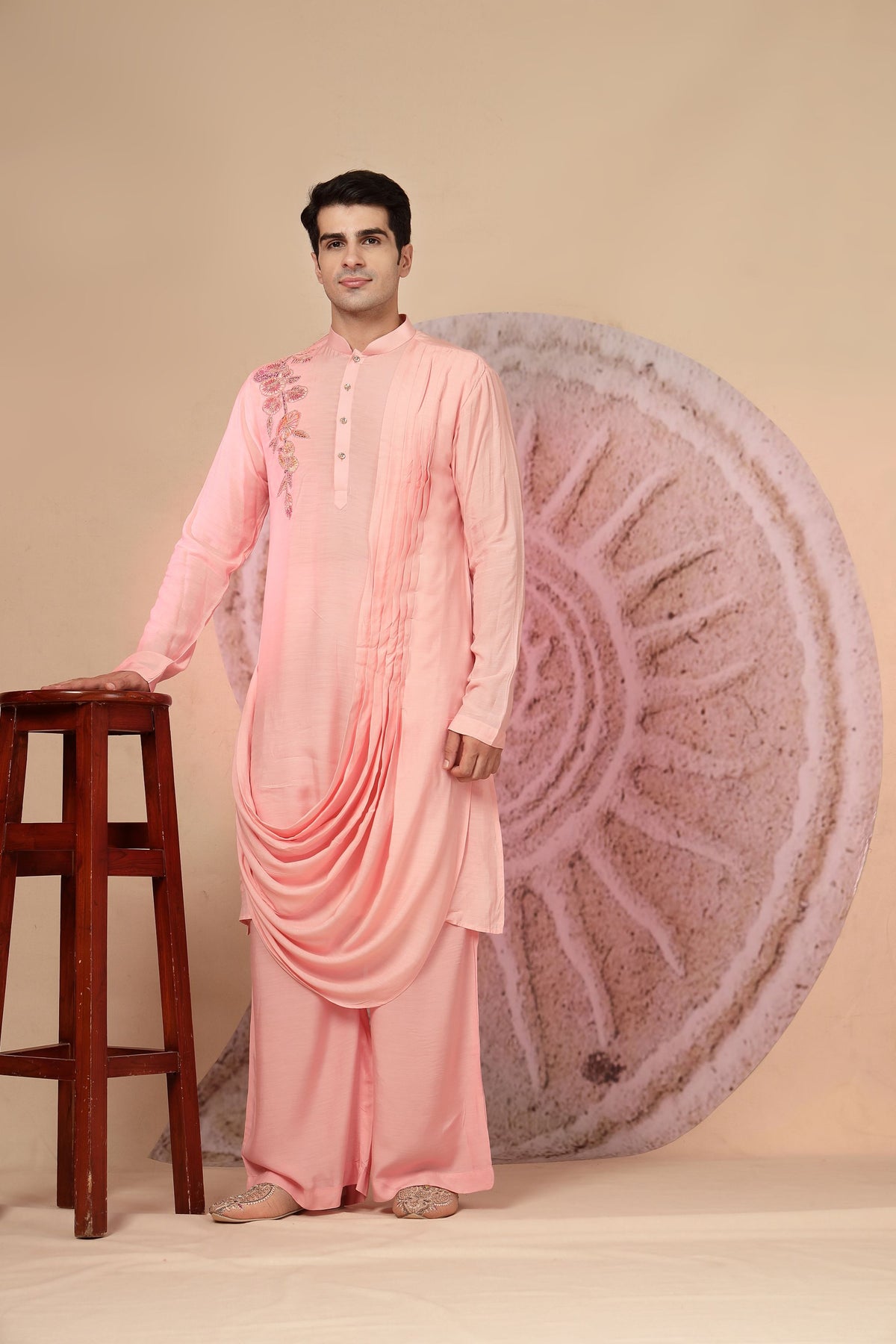 Cowl kurta Elevate your ethnic wardrobe with this stunning peach pink designer kurta set that blends traditional elegance with a modern twist. Crafted with premium fabric, this outfit ensures both comfort and style, making it a perfect pick for festive and wedding occasions.